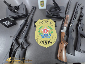 Durante o cumprimento das diligências, em um dos imóveis alvos da operação, os policiais civis localizaram e apreenderam sete armas de fogo. Conforme determinação judicial, todo o material foi arrecadado e ficará custodiado até definição de sua destinação final.