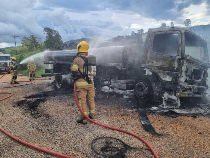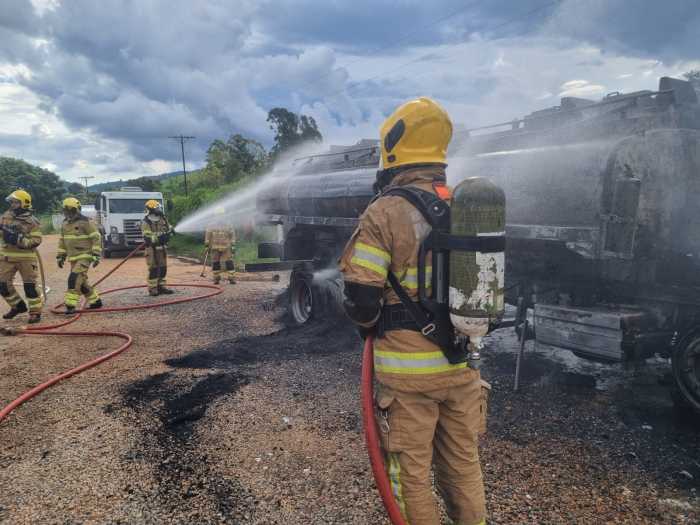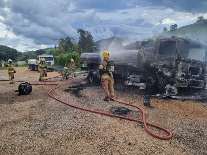 Por volta das 15h40, o Corpo de Bombeiros foi acionado para combater um incêndio em veículo de transporte de combustível na zona oeste de Poços de Caldas.
