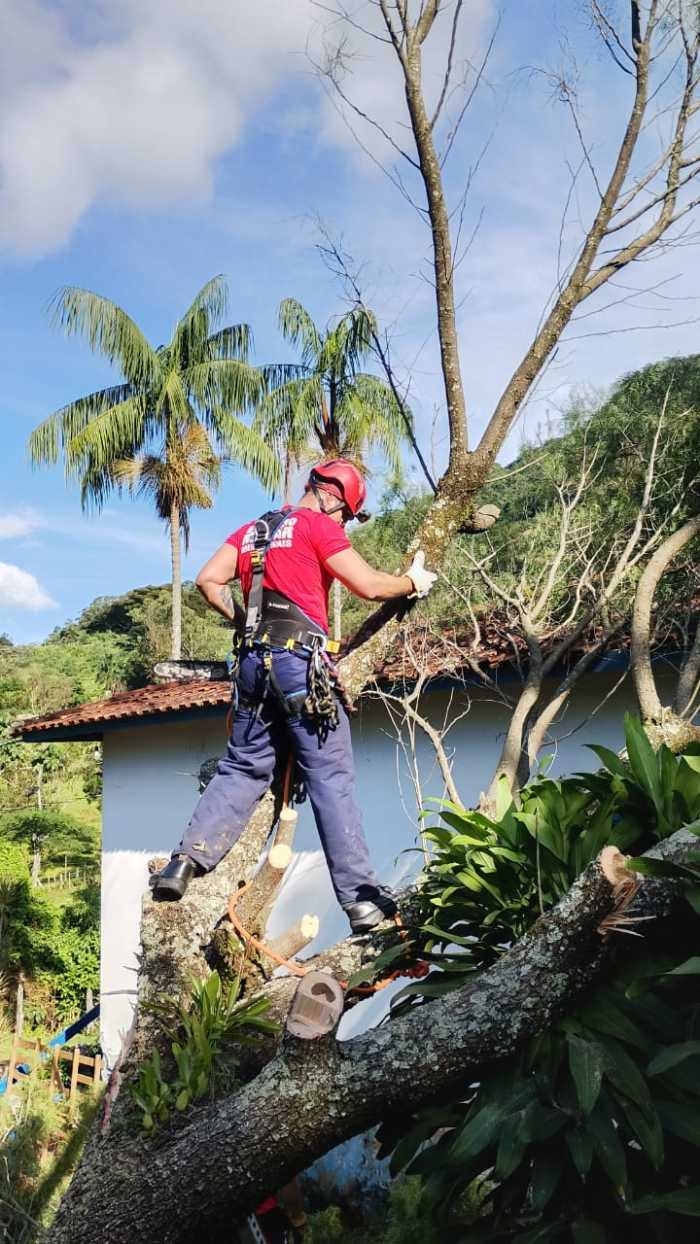 Na manhã de domingo, por volta das 7h20, bombeiros do Posto Avançado de Andradas foram acionados para realizar o corte de uma árvore de grande porte que caiu sobre o telhado de uma residência na Avenida Procópio Stella, no bairro Jardim Alto da Serra.