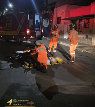 Acidente ocorreu por volta das 1h50 desta segunda-feira, no bairro Chapada, em Alfenas; vítima sofreu escoriações e fraturas dentárias, recebeu atendimento do Corpo de Bombeiros e foi encaminhada ao hospital para avaliação médica.