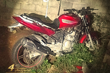No quintal do imóvel, os militares localizaram uma Yamaha Fazer 250, vermelha, sem placa. Após contato com a responsável pela casa, foi realizada busca domiciliar, sendo constatado que o veículo estava com a numeração do chassi e do motor suprimida, impossibilitando a identificação.