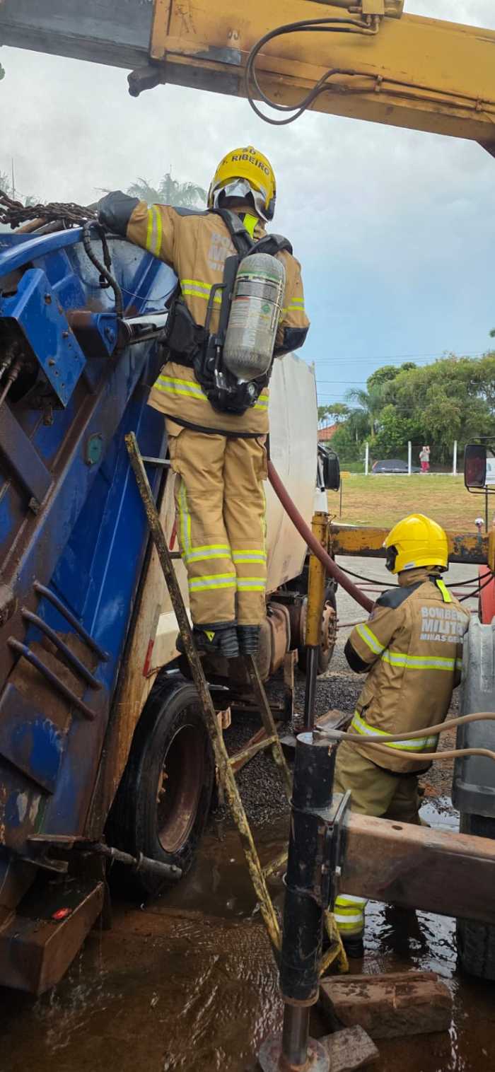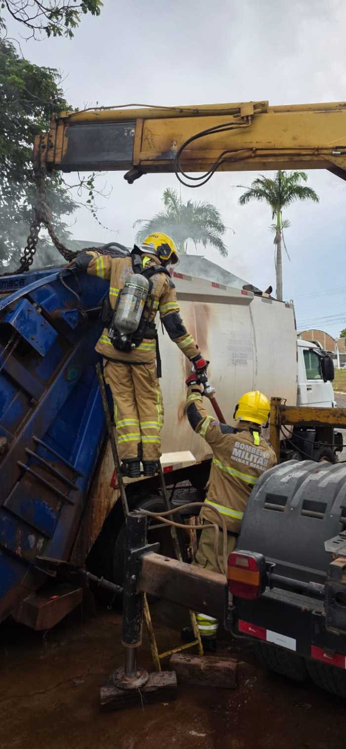 Por volta das 17h30 desta segunda-feira (30/03/26), militares da 3ª Companhia do Corpo de Bombeiros de Alfenas foram acionados para conter um princípio de incêndio no compartimento de carga de um caminhão de coleta de resíduos, no bairro Distrito Industrial.