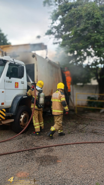 Segundo a corporação, uma viatura de Auto Bomba foi deslocada para evitar a propagação das chamas para a cabine e o sistema hidráulico do veículo. No local, a equipe estabeleceu uma linha direta de combate, realizando o resfriamento externo do coletor para redução da temperatura interna.
