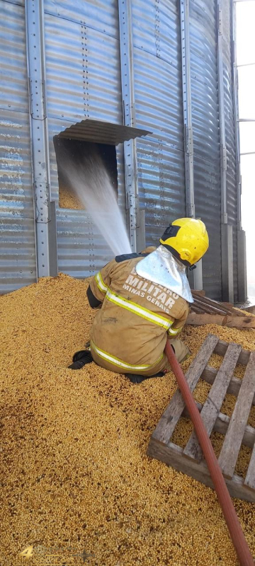 Bombeiros controlam incêndio em silo de soja em Boa Esperança Corpo de Bombeiros, MG