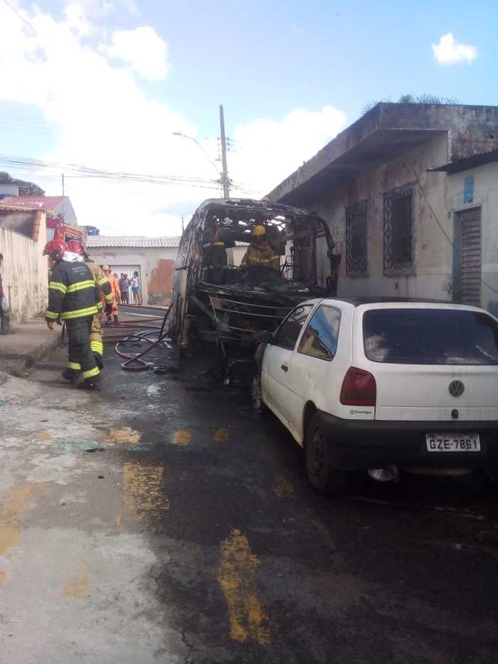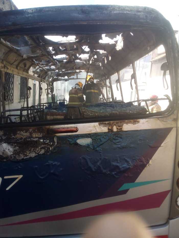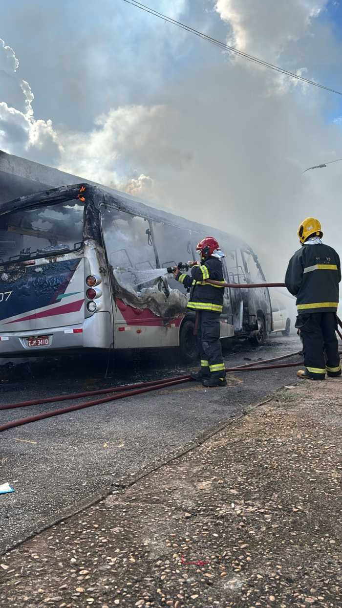 O motorista informou que, ao dar partida no ônibus, percebeu odor de queimado e, em seguida, o início das chamas na região do motor. Ele tentou conter o fogo com extintores, mas não obteve sucesso.
