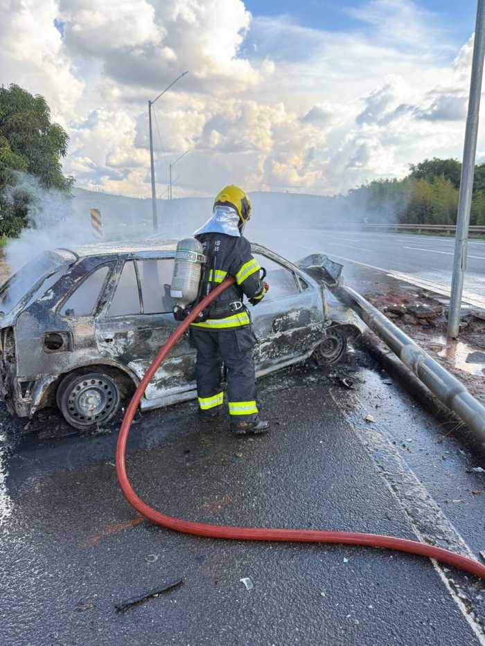 Também no dia 6 de abril de 2026, o Corpo de Bombeiros de Três Corações atendeu a um incêndio em veículo de passeio na BR-381, em área próxima ao pátio da Polícia Rodoviária Federal (PRF).