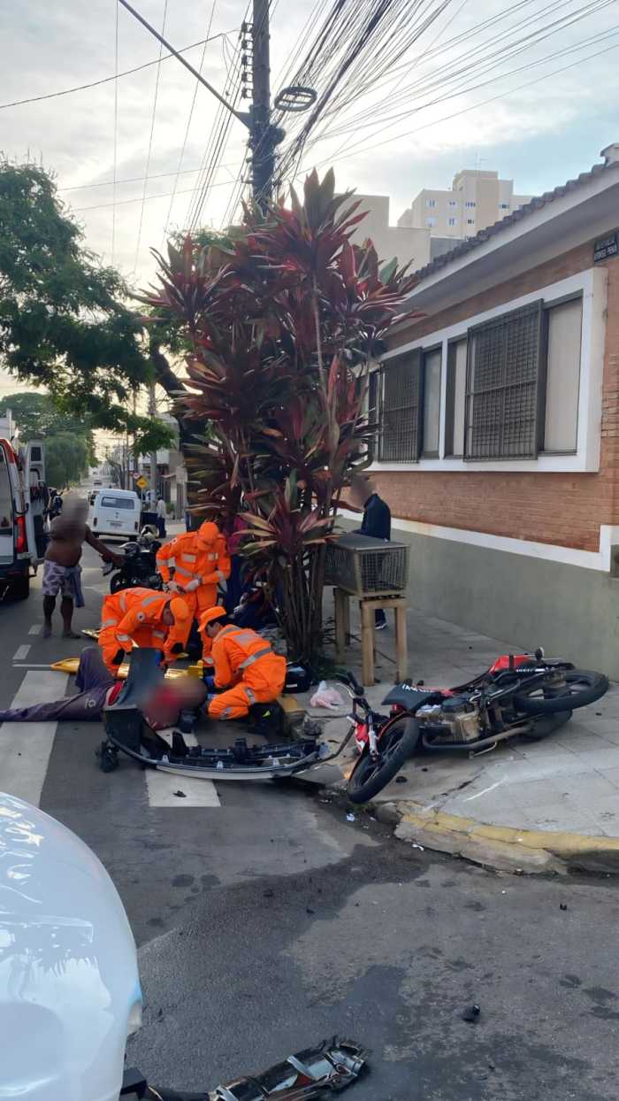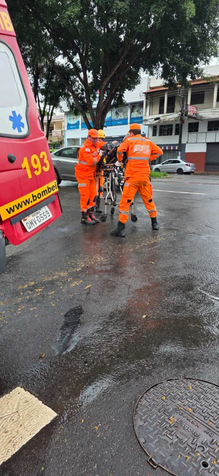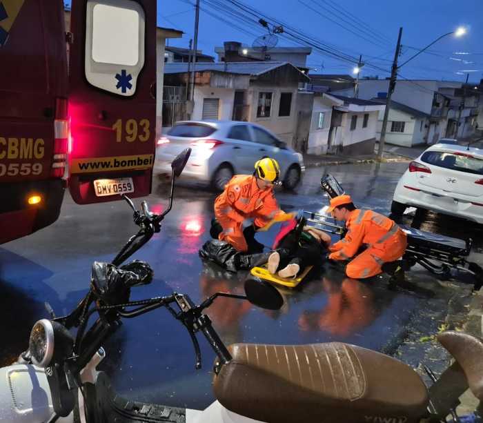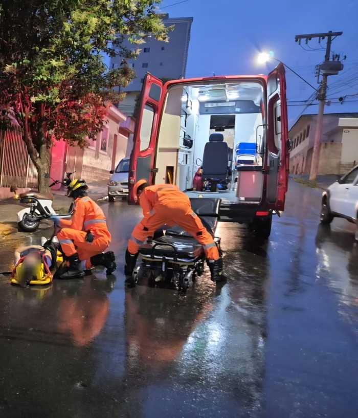 A vítima apresentava escoriações na face e contusão na perna direita, sem fraturas aparentes. Após avaliação e imobilização, foi encaminhada ao Hospital Alzira Velano. A condutora do veículo permaneceu no local e auxiliou no socorro.