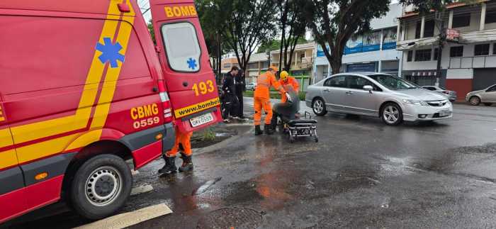 Ela foi levada consciente ao Hospital Alzira Velano. Os motoristas dos automóveis não se feriram. A Polícia Militar acompanhou a ocorrência e adotou as medidas cabíveis quanto aos veículos sinistrados.