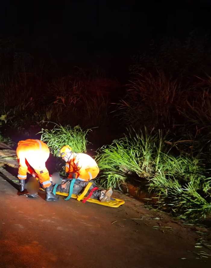 Durante a avaliação, os bombeiros constataram um corte no pé esquerdo e escoriações no joelho e cotovelo direitos, sem fraturas aparentes. Após imobilização em prancha longa e primeiros socorros, a mulher foi encaminhada ao Hospital Alzira Velano, onde permaneceu sob observação médica.